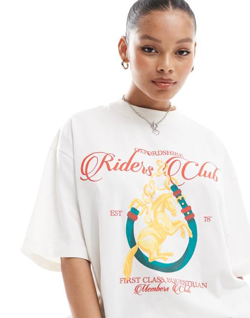ASOS DESIGN oversized t-shirt with horse graphic in off white