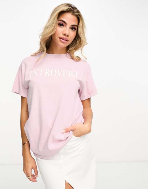 ASOS DESIGN oversized t-shirt with introvert graphic in pink