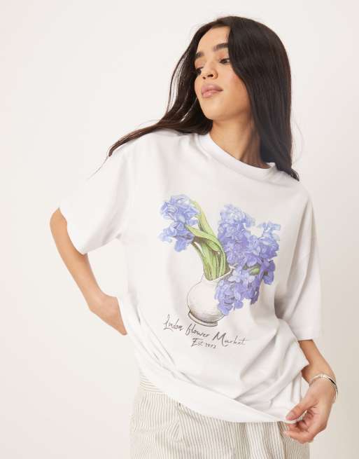 ASOS DESIGN oversized t-shirt with london flower market graphic in white