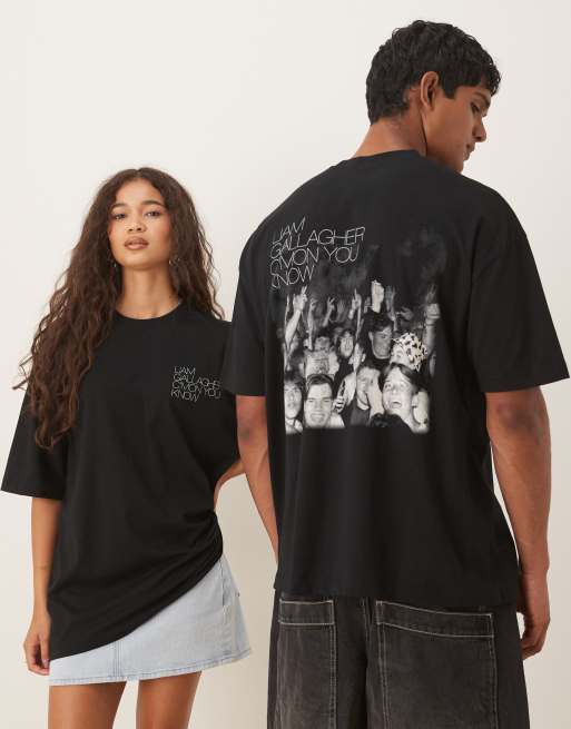ASOS DESIGN oversized t-shirt with Oasis Liam Gallagher prints in black