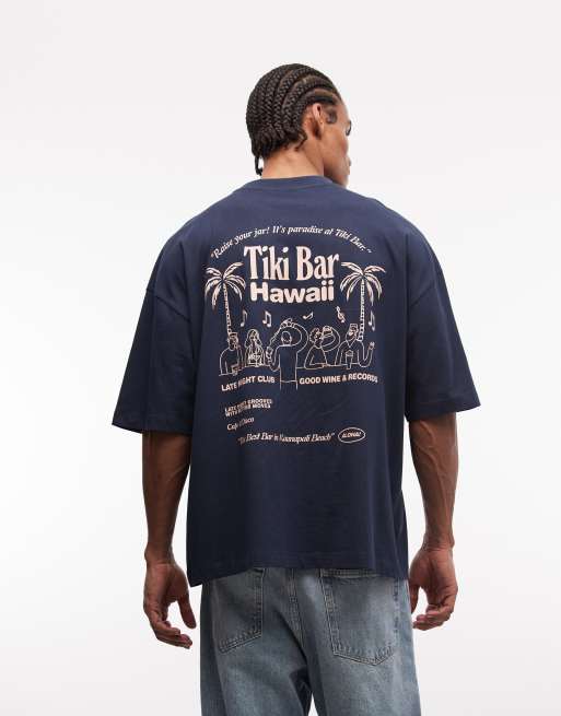 ASOS DESIGN oversized t-shirt with palm tree graphic in navy