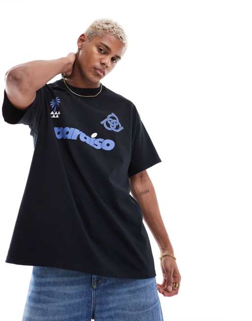 ASOS DESIGN oversized t-shirt with paraiso front print in black