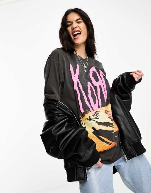 ASOS DESIGN oversized t-shirt with pink korn licence graphic in washed charcoal