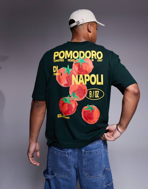 ASOS DESIGN oversized t-shirt with pomodoro graphic in dark green
