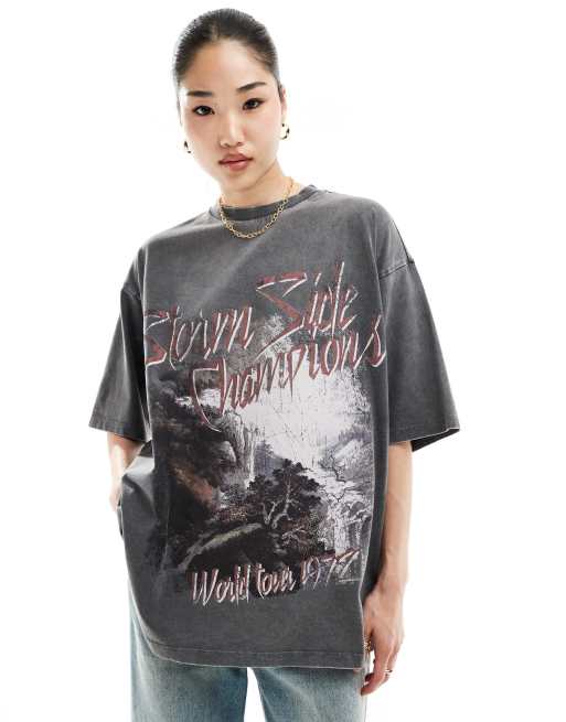 ASOS DESIGN oversized t-shirt with rock graphic in in washed charcoal