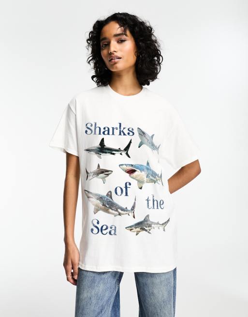 ASOS DESIGN oversized t-shirt with shark graphic in white