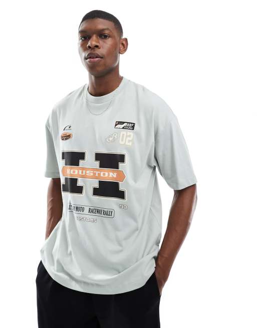 ASOS DESIGN oversized t-shirt with sports graphic in stone blue