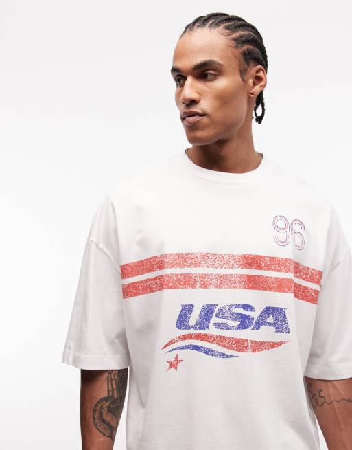 ASOS DESIGN oversized t-shirt with USA football graphic in white