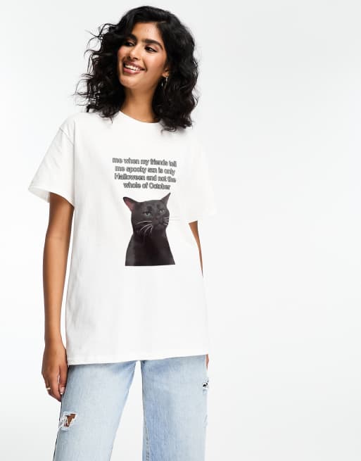 ASOS DESIGN oversized t-shirt with zoned out cat in white