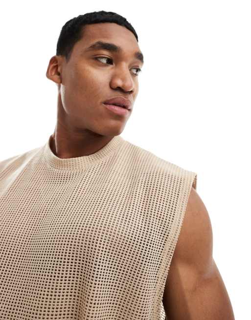 ASOS DESIGN oversized tank in beige open mesh