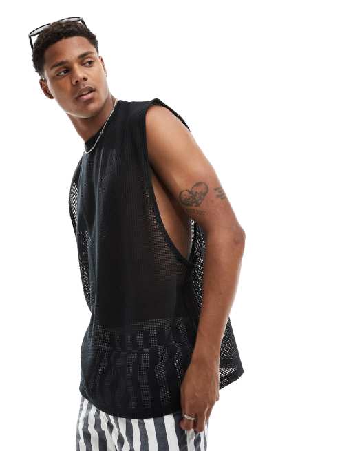 ASOS DESIGN oversized tank vest in black open mesh