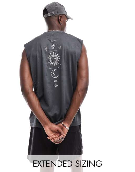 ASOS DESIGN oversized tank vest in grey sporty mesh with spine print