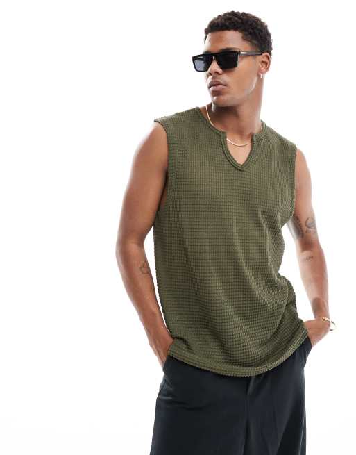 ASOS DESIGN oversized tank vest in khaki crochet