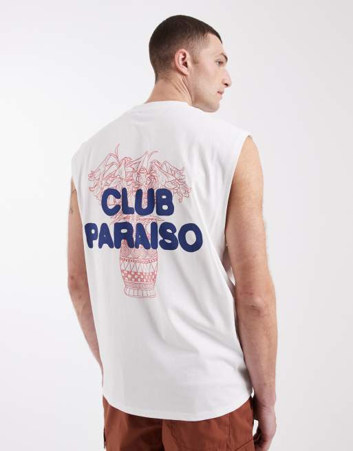 ASOS DESIGN oversized tank with bubble floral back print in off white