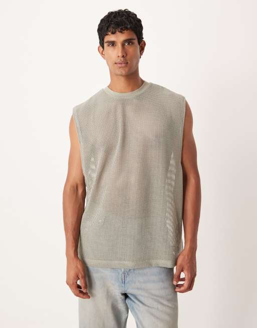 ASOS DESIGN oversized tank with dropped armhole in sage open mesh