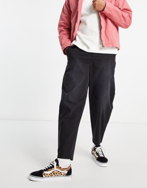 ASOS DESIGN oversized tapered fit chinos in black with pigment spray finish