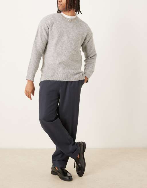 ASOS DESIGN oversized tapered smart trousers in navy stripe with turn up hem