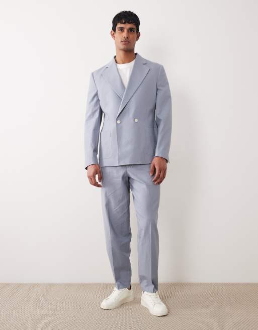 ASOS DESIGN oversized tapered suit trousers in blue with linen
