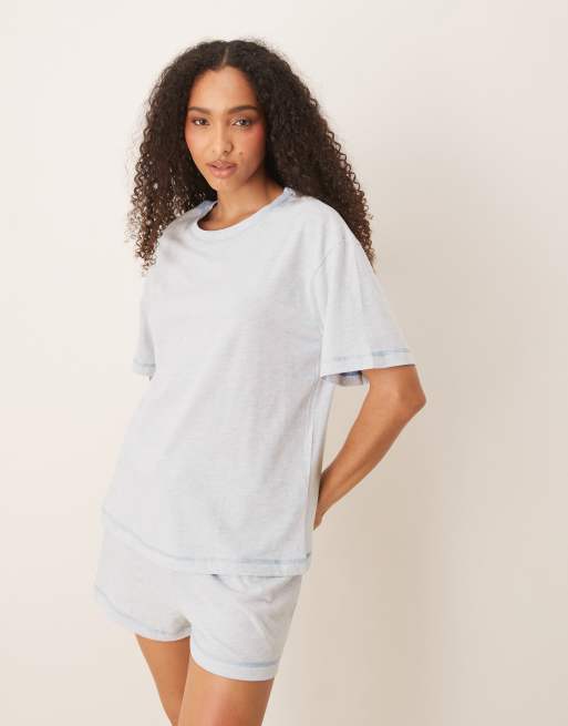 ASOS DESIGN oversized tee and short pyjama set in blue marl