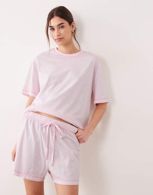 ASOS DESIGN oversized tee and short pyjama set in dusty pink with contrast overlock stitch