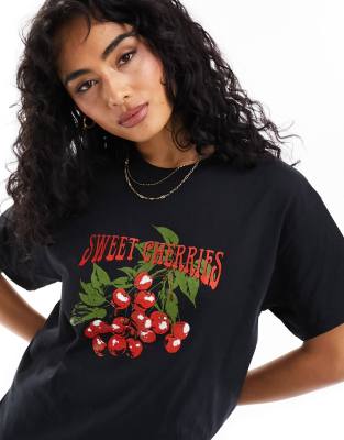 ASOS DESIGN oversized tee with cherry graphic in black