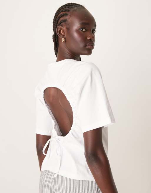 ASOS DESIGN oversized tee with drawstring back detail in white
