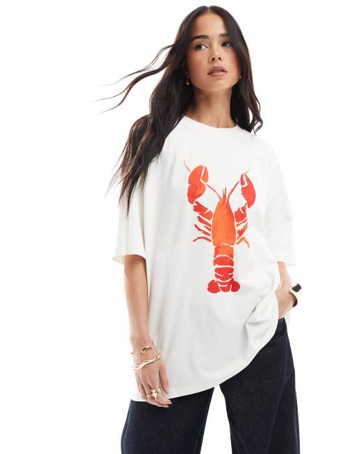 ASOS DESIGN oversized tee with lobster graphic in ecru