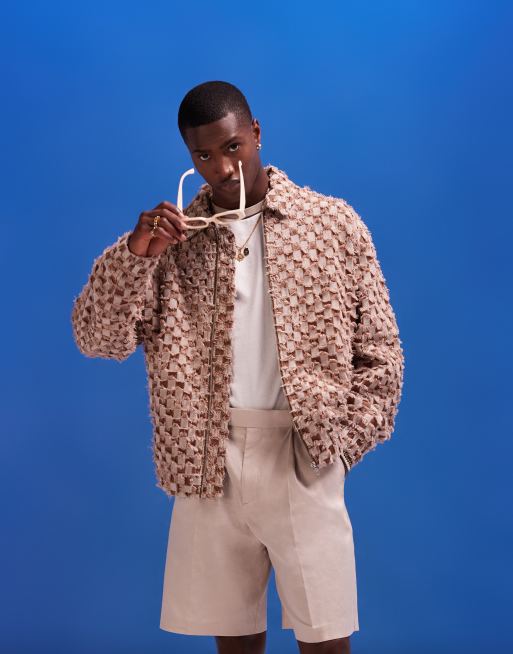 ASOS DESIGN oversized textured checkerboard harrington jacket in brown