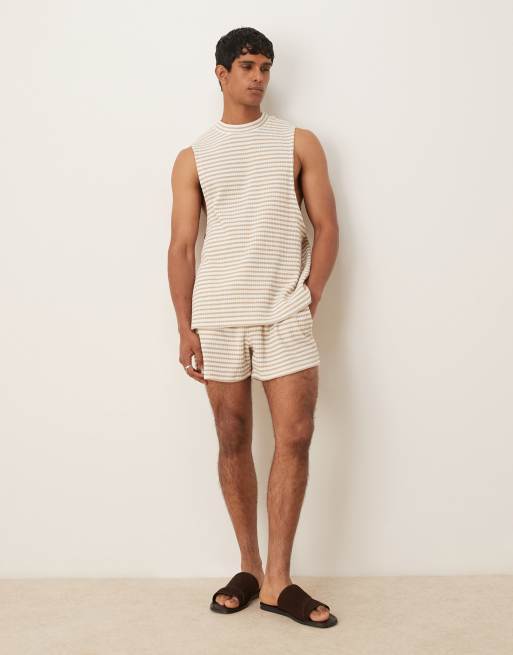 ASOS DESIGN oversized textured stripe shorts in beige
