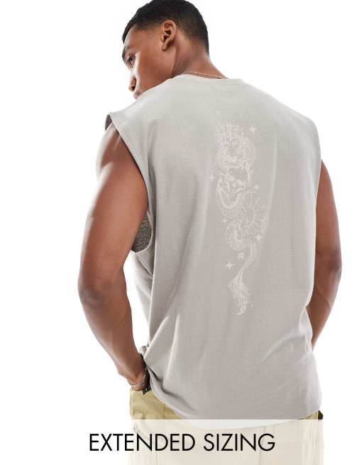 ASOS DESIGN oversized textured vest in stone with back print