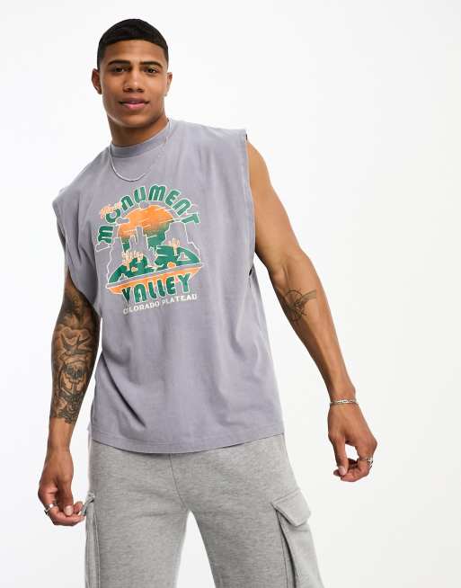 ASOS DESIGN oversized vest in acid wash with valley front print
