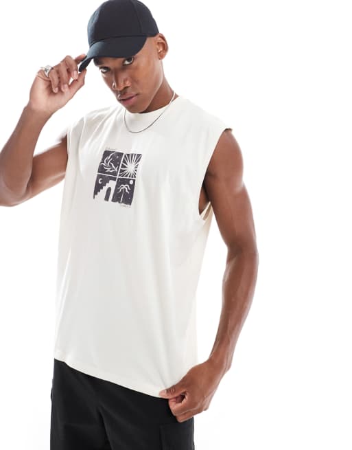 ASOS DESIGN oversized vest in off white with chest print