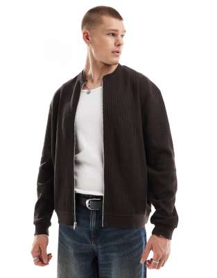ASOS DESIGN oversized waffle cardigan in dark brown