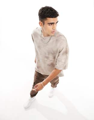 ASOS DESIGN oversized waffle t-shirt in brown and beige tie dye