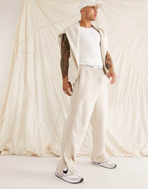 ASOS DESIGN oversized wide leg joggers with poppers in beige - BEIGE