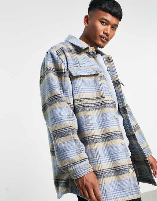 ASOS DESIGN oversized wool look shacket in blue check
