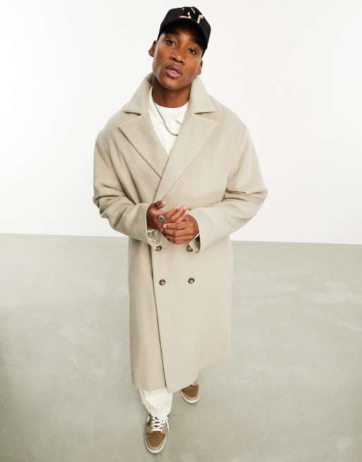 ASOS DESIGN oversized wool mix overcoat in beige