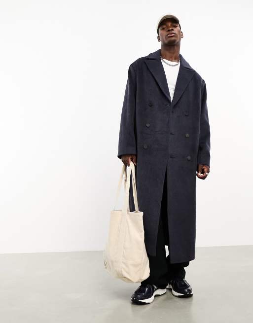 ASOS DESIGN oversized wool mix overcoat in navy