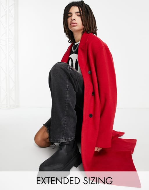 ASOS DESIGN oversized wool mix overcoat in red