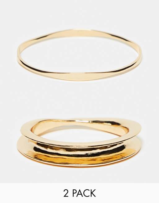 ASOS DESIGN pack of 2 bangle bracelets with slim curved design in gold tone