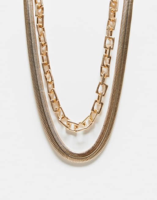 ASOS DESIGN pack of 2 chunky necklaces in brushed gold tone