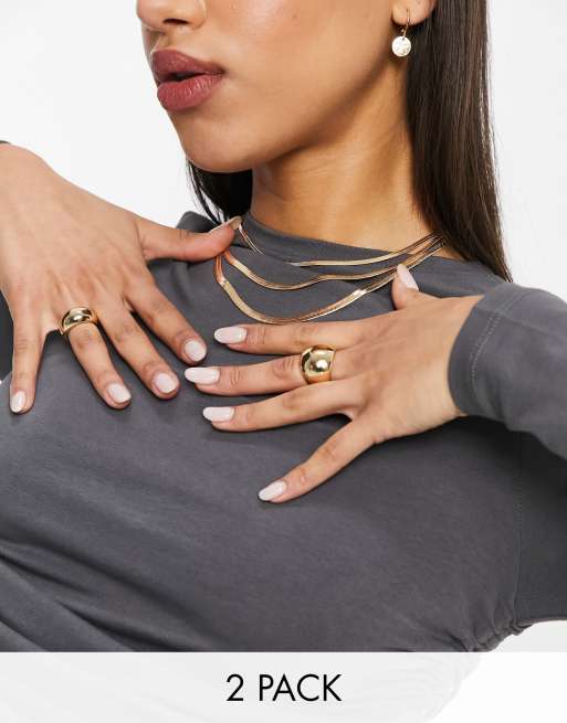 ASOS DESIGN pack of 2 dome rings in gold tone