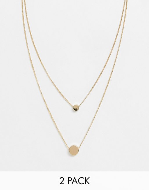 ASOS DESIGN pack of 2 double disc necklaces in gold tone