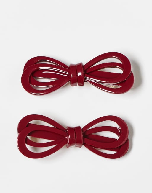 ASOS DESIGN pack of 2 hair bow clips in burgundy