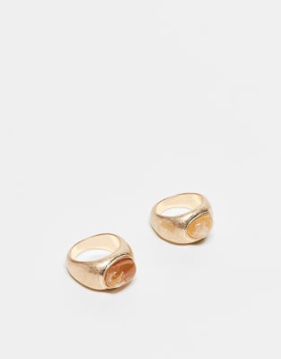 ASOS DESIGN pack of 2 rings with faux stone set detail in brushed gold tone