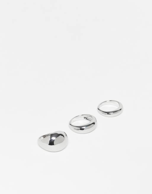 ASOS DESIGN pack of 3 chunky bubble rings in silver tone