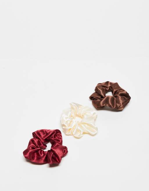 ASOS DESIGN pack of 3 scrunchie hair bands in satin design in multi