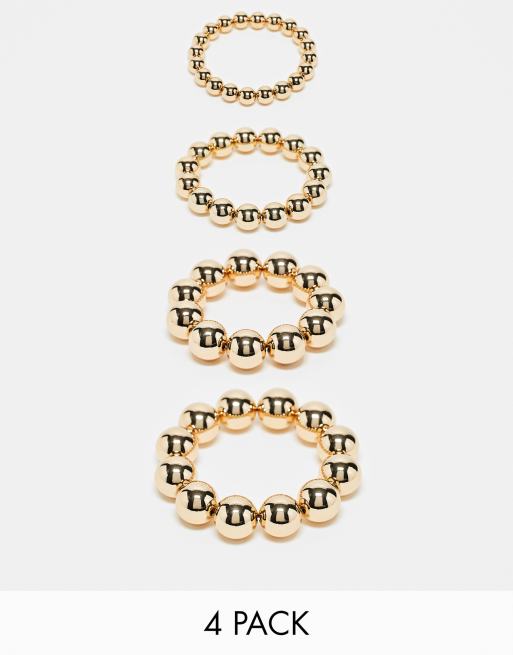 ASOS DESIGN pack of 4 bracelets with ball detail in gold tone