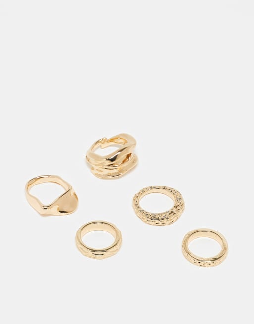 ASOS DESIGN pack of 5 rings in mixed textures in gold tone