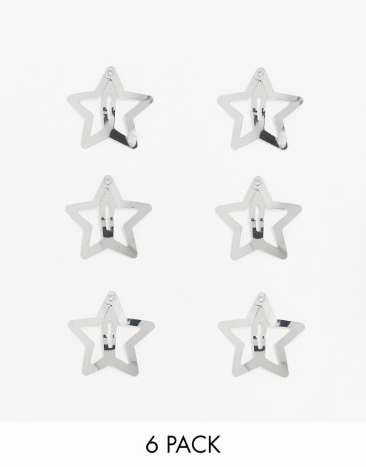 ASOS DESIGN pack of 6 hair clips with star detail in silver tone
